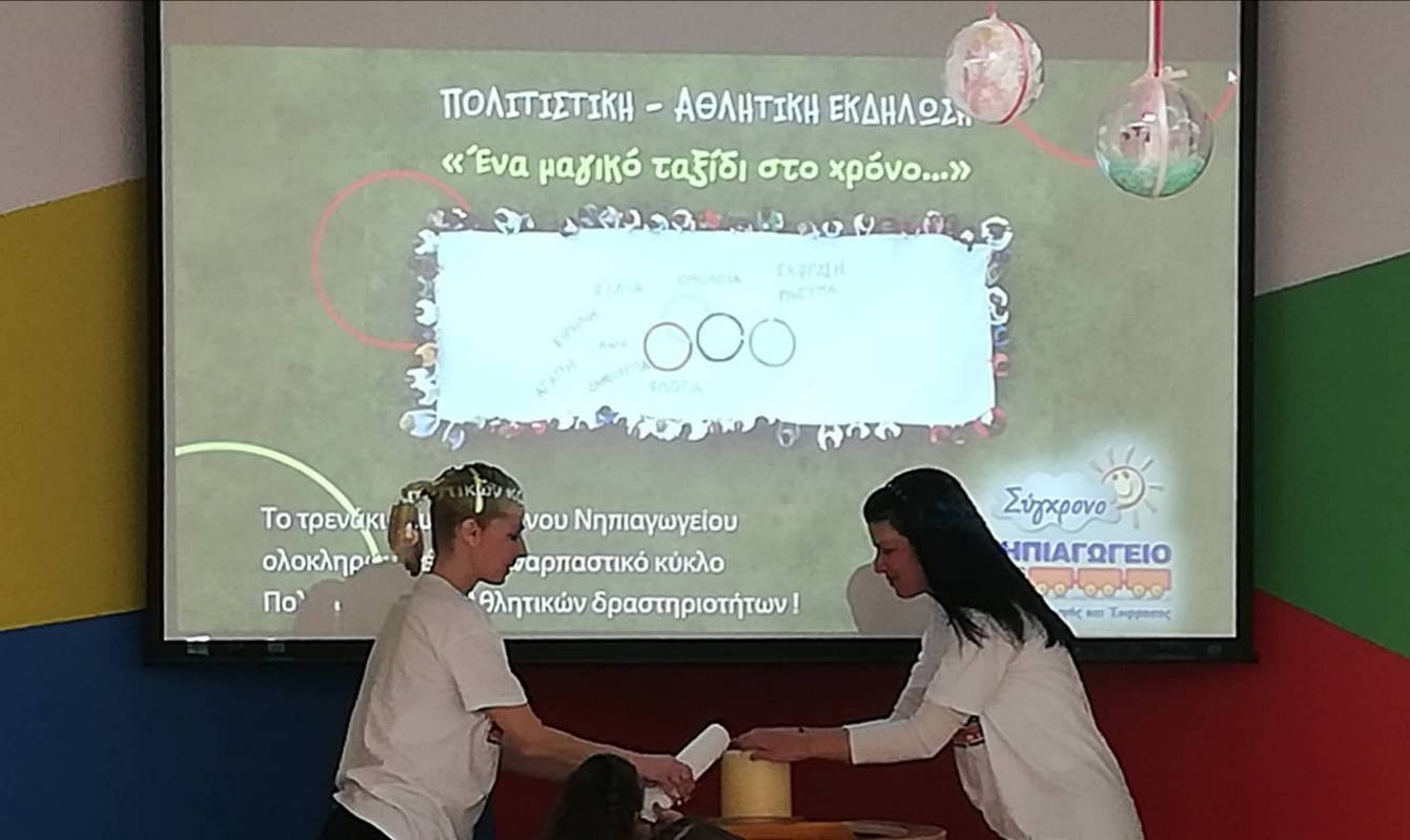 Το τρενάκι του Σύγχρονου Νηπιαγωγείου ξεκίνησε «ένα Μαγικό Ταξίδι στο Χρόνο», με δράσεις πολιτιστικού και αθλητικού περιεχομένου, στους εξωτερικούς κι εσωτερικούς χώρους του σχολείου, όπως γυμναστικές δραστηριότητες, αθλοπαιδιές, παραδοσιακά παιχνίδια, παραδοσιακούς χορούς, δρώμενα από ήθη και έθιμα της χώρας μας.