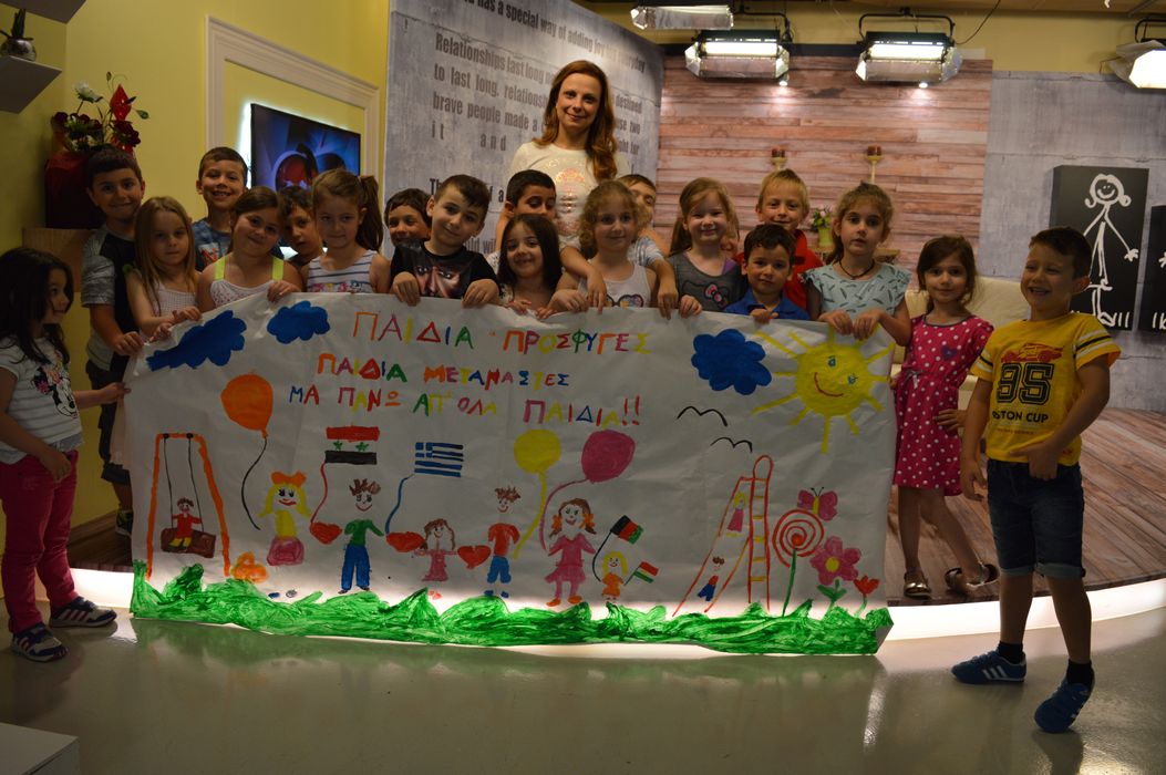 Επιπλέον, η δημοσιογράφος του καναλιού κα Λένα Παρασκευά έδωσε την ευκαιρία στα παιδιά να κάνουν για λίγο τους δημοσιογράφους, ενώ μέσα από αυτό το βήμα, τους δόθηκε η ευκαιρία να στείλουν μηνύματα αγάπης για όλους τους μετανάστες και ιδιαίτερα στα μικρά παιδιά που φιλοξενούνται αυτή τη στιγμή στη χώρα μας.