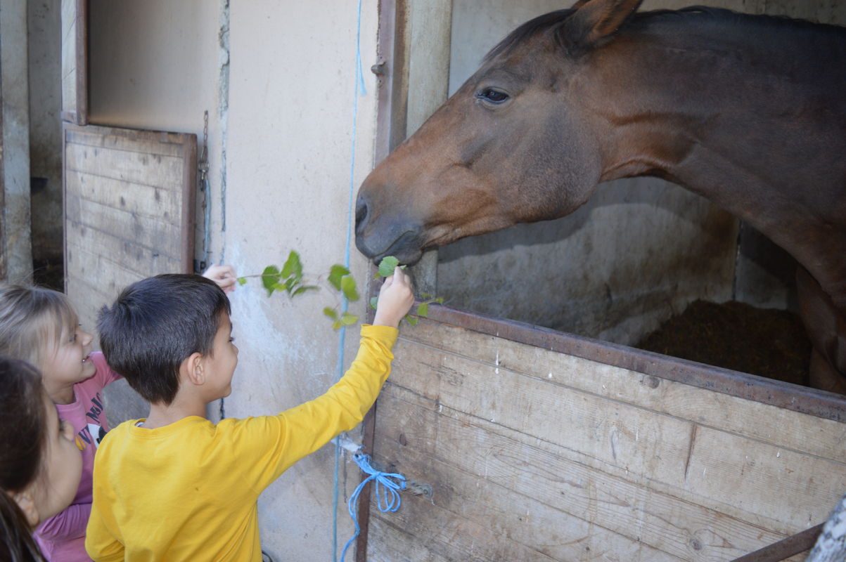 Έτσι, λαμβάνοντας υπόψη την αρχή της αναδυόμενης και βιωματικής μάθησης κατά την εκπαιδευτική διαδικασία, καθώς και την σπουδαιότητα προσέγγισης της γνώσης με βάση τα ενδιαφέροντα και της ανησυχίες των παιδιών αποφασίσαμε να επισκεφθούμε, την Παρασκευή, 20 Οκτωβρίου 2017, τον Ιππικό Όμιλο Λαμίας προκειμένου να γνωρίσουμε από κοντά τα αγαπημένα μας άλογα και φυσικά να ψυχαγωγηθούμε κάνοντας ιππασία συντροφιά με τους φίλους μας.