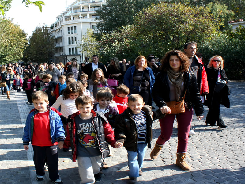 Τα παιδιά συνόδεψαν οι γονείς, το εκπαιδευτικό προσωπικό και η μουσειοπαιδαγωγός του Σύγχρονου Νηπιαγωγείου.