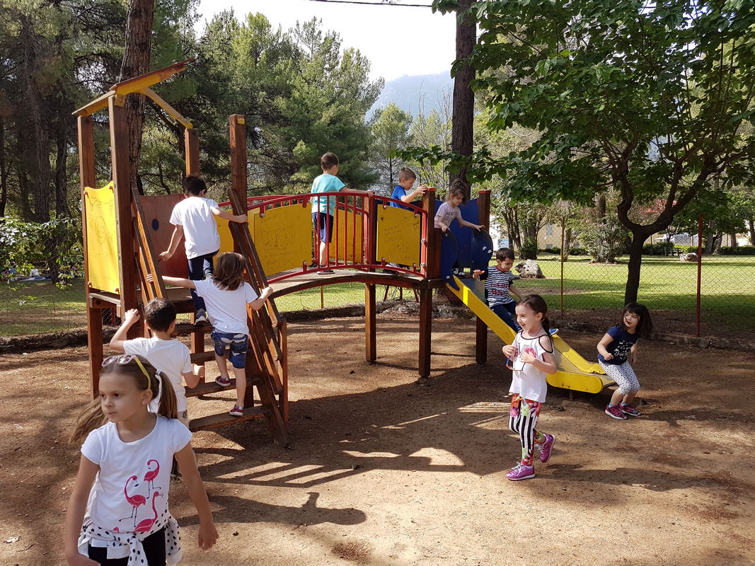 Έτσι, είδαμε την ιαματική πηγή των Λουτρών Υπάτης και συζητήσαμε για τις θεραπευτικές ιδιότητες του συγκεκριμένου νερού, ενώ στη συνέχεια παίξαμε με την ψυχή μας στην παιδική χαρά του πάρκου. Και επειδή τα ομαδικά παιχνίδια μας αρέσουν πολύ αποφασίσαμε να παίξουμε μήλα, ποδόσφαιρο και να κάνουμε σκυταλοδρομίες με κουκουνάρια, που μαζέψαμε από το πάρκο. Η χαρά μας γι’ αυτή την εξόρμηση ήταν απερίγραπτή και μας συνόδεψε και κατά την επιστροφή μας στο σχολείο με γέλια και τραγούδια.